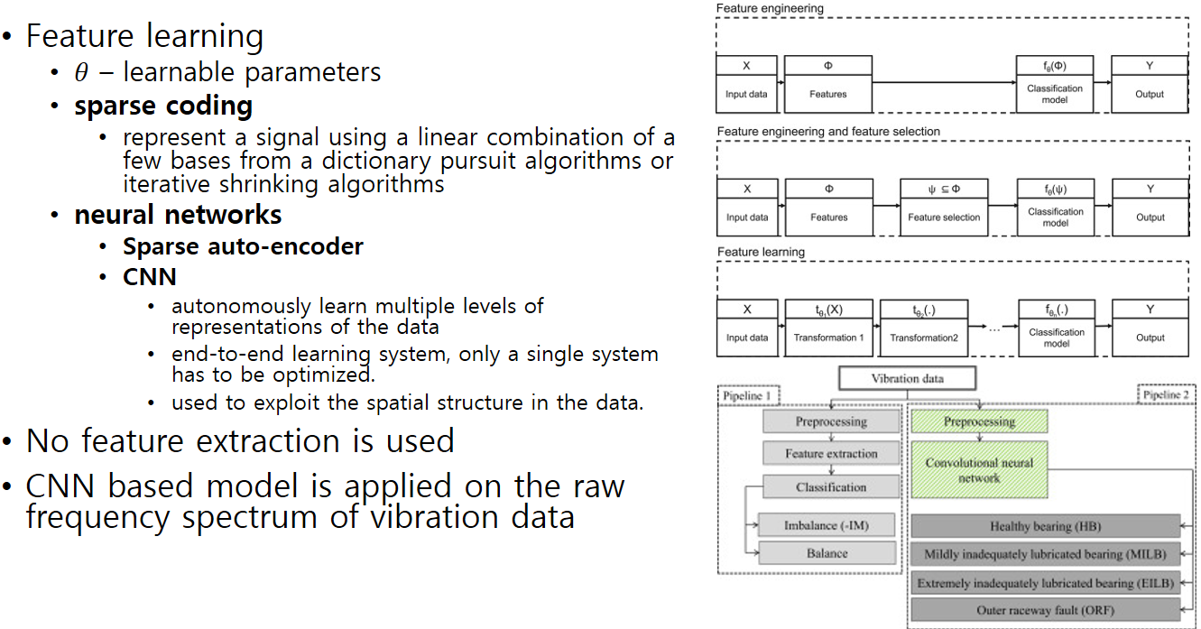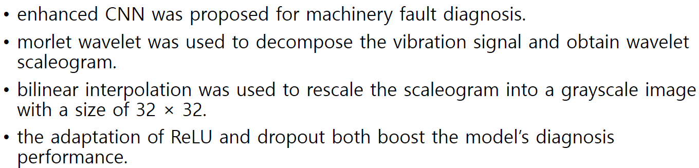 저번 게시물에 이어 Bearing Fault Diagnosis 관련 논문을 소개합니다. 저번 게시물에서도 말씀드렸다시피 베어링의 이상을 감지하기 위해서는 여러 종류의 센서 데이터를 사용할 수 있고, 그중에서도 진동 센서 데이터를 가장 많이 사용합니다. 이 분야에서 가장 많이 사용되어 왔던 방법론은 먼저 feature extractor로 모델의 인풋으로 들어갈 피쳐를 추출한 다음, classification 알고리즘을 적용한 것입니다. 저번 게시물에서 autoencoder 기반 방법론을 다루었고, 이번 게시물에서는 CNN 기반 방법론을 소개합니다.