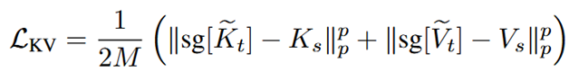 KV distillation loss는 R-KV로 압축된 teacher의 KV cache에 내재된 정보들을 student의 KV cache로 증류하는 함수이다. CODI loss와 유사하게 손실 함수가 설계되었다. 이때 p는 1 또는 2의 값을 가지며, student의 KV cache 사이즈(M)에 맞추어 압축이 되었기 때문에 M으로 두 번 나눈다. (key, value 한 번씩)