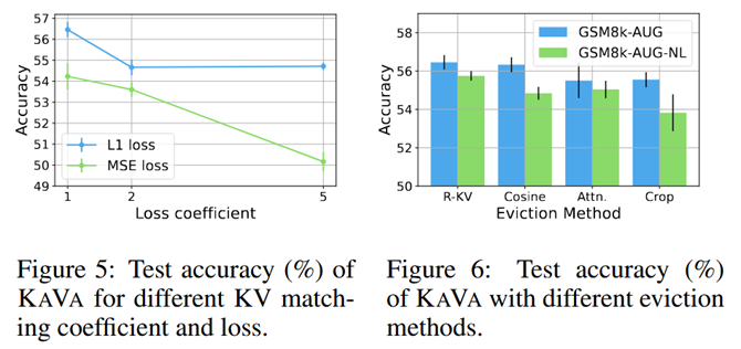 KAVA가 학습하는 손실함수는 다음과 같다: 1) student/teacher loss, 2) CODI loss, 3) KV distillation