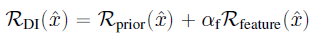 따라서 DeepInversion의 regularization term은 R_prior와 R_feature를 추가함으로써 아래와 같이 정의할 수 있습니다.