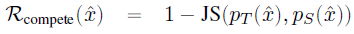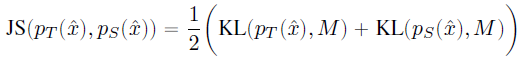 논문에서는 Jensen-Shannon divergence를 활용한 정규화 term을 추가하여 synthesized image가 student 모델과 teacher 모델의 output의 분포의 불일치를 유도합니다. Jensen-Shannon divergence는 KL divergence의 평균으로, 두 output간의 분포를 거리로 치환하여 거리를 최소화 시킴으로써 두 분포를 일치시킵니다. 하지만 본 논문에서는 이미지의 다양성을 추구해야 하므로 두 분포의 거리를 최대화 시키기 위해 Jensen-Shannon divergence 값을 1에서 뺍니다.