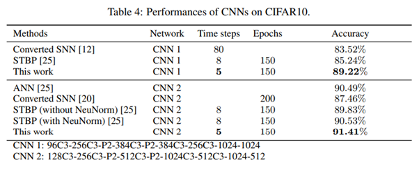 - 실험의 결과는 다음과 같이 타 SNN의 BP와 비교할 때, 앞서 논문에서 언급한 것처럼 이전 논문들의 긴 time step을 극복하고 짧은 time step 내로 높은 accuracy를 달성하여 precision delay를 줄일 수 있는 결과를 확인할 수 있었습니다. 이를 통해 학습 시간도 단축하여 SNN의 등장 목적을 달성할 수 있을 것이라고 말하고 있습니다.