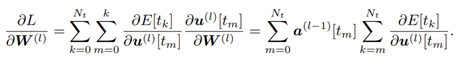 - 이러한 Dependency를 결합하여 chain rule에 사용되는 term을 구하여 쓸모없는 구간에서 기억하고 연산하는 것을 막으므로 시간을 절약할 수 있다고 저자는 말하고 있습니다. 아래의 식처럼 Firing 여부에 따라 해당 term이 연산되며, back propagation이 chain rule에 의해서 진행되는지 되지 않는지 확인할 수 있게 됩니다.