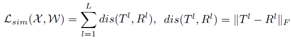 최종적으로 추가되는 loss term은 instance similarity $R^l[i,j]$와 sub-network similarity$T^l[i,j]$간의 Frobenius norm으로 정의됩니다.