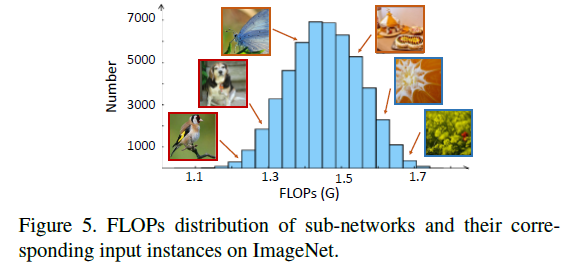 FLOPs가 적은 sub-network일수록 그에 대응되는 이미지가 간단한 것을 볼 수 있습니다. FLOPs가 높아질수록 object가 명확하지 않고 어려운 이미지를 판별하게 됩니다.