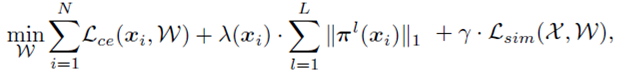 최종 학습 objective는 다음과 같습니다. 2번째는 instance와 sub-network간의 complexity를 정렬하기 위한 term이고 위에서 소개한 $\lambda(x_i)$에 의해 통제됩니다. 세번째는 similarity를 유지하기 위한 term이고 hyperparameter $\gamma$에 의해 통제됩니다.