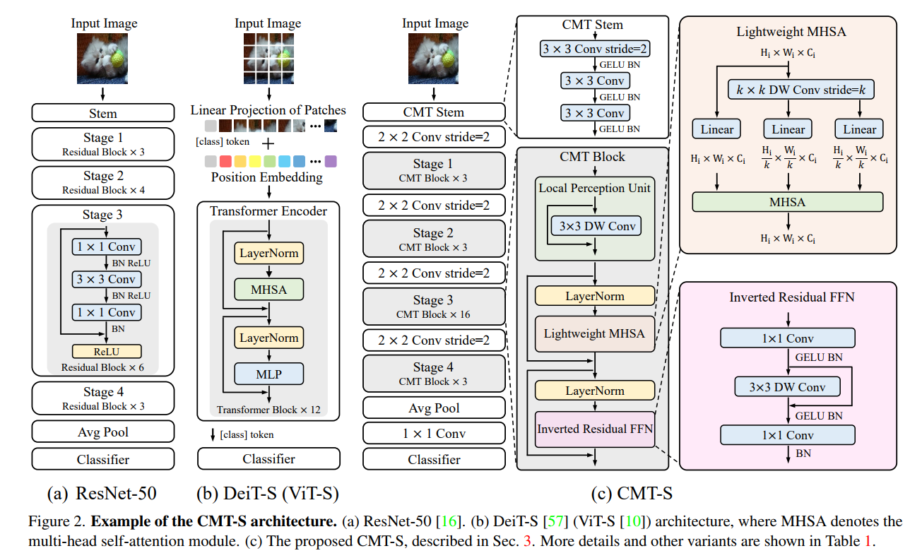 - CMT Block의 LPU(Local Perception Unit)와 IRFFN(Inverted Residual Feed-Forward Network)은 로컬과 글로벌 구조 정보를 모두 캡처하고 네트워크의 표현 능력에 도움이 된다.