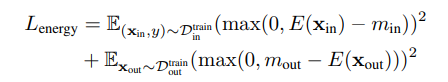 이 항은 hinge loss로, ID data가 m_in이라는 ID data에 대한 energy threshold(m_in)보다 크면 loss를 부여하고, 반대로 OOD data가 OOD data에 대한 energy threshold(m_out)보다 작으면 loss를 부여하는 방식입니다.