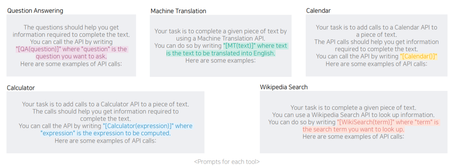 - LM이 스스로 external tool을 쓰도록 학습할 수 있게 한다.