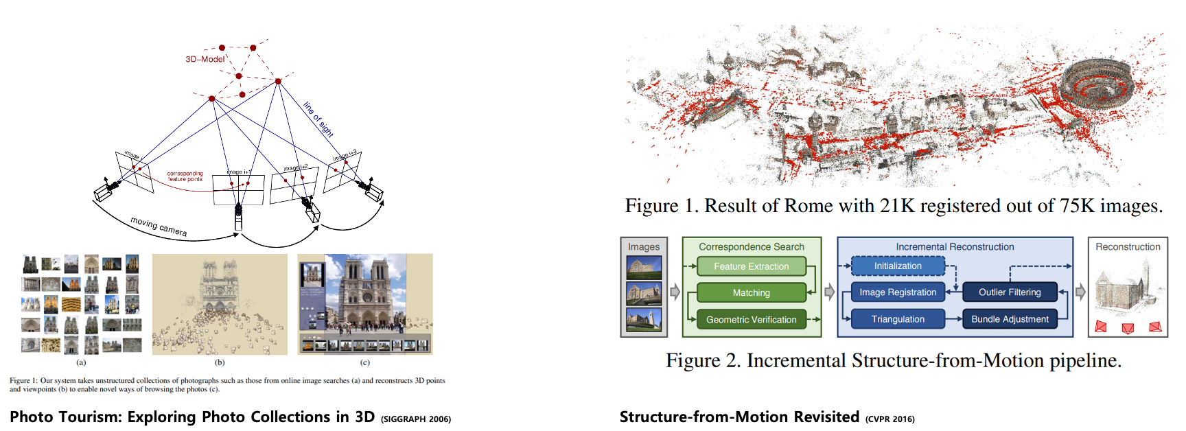 SfM 알고리즘이란 Photo Tourism: Exploring Photo Collections in 3D 논문에서 제안한 알고리즘으로, 하나의 대상을 촬영한 여러장의 입력 이미지로부터, 이 대상의 representation을 잘 나타낼 수 있는 point cloud들을 찾아내는 알고리즘입니다.
