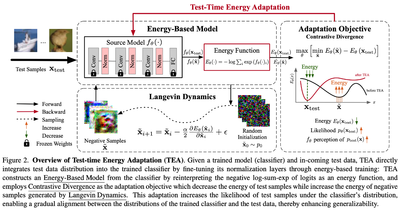 소개할 "TEA: Test-time Energy Adaptation, CVPR, 2024"는 테스트 시점에 covariate shift가 발생한 데이터 (ground truth를 알 수 없는 unlabeled target 데이터)를 바탕으로 Energy-Based Modeling (EBM)의 관점을 적용하여 배포된 모델의 일부 파라미터를 fine-tuning하는 방법을 제안합니다.