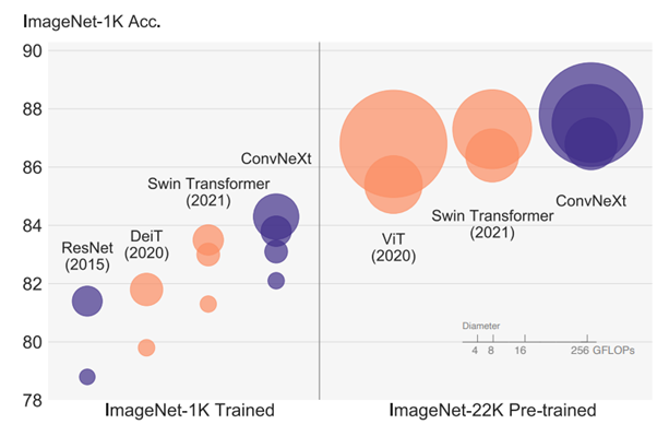 - 흔히 Transformer의 장점 중 하나인 self-attention이 그러한 원인이라면, attention이 없음에도 더 좋은 성능을 보이는 ConvNeXt 모델은 무엇인가?