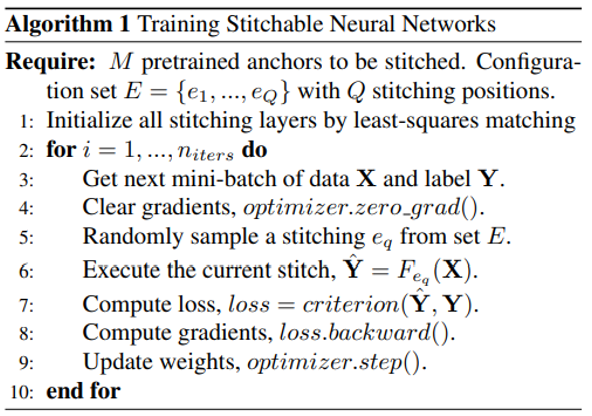아래는 Stitchable Neural Network의 구축 알고리즘입니다.