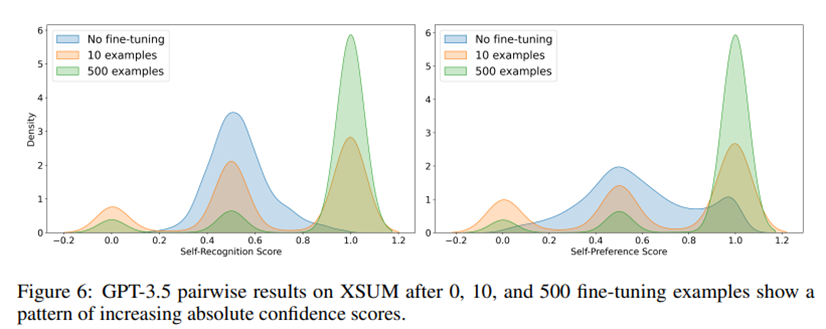 Figure 6. 본 논문에서는 Fine-tuning에 따라 self-recognition의 능력이 변화함에 따라 self-preference 능력도 선형적으로 증가함을 보여줍니다.