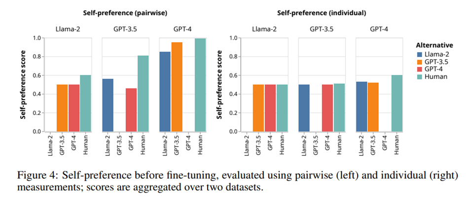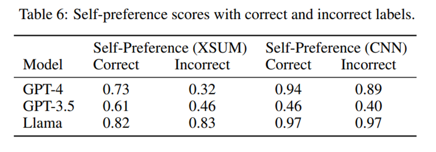 구체적으로, LLM은 LLM 스스로가 생성한 아웃풋에 대해서 다른 LLM이나 인간이 작성한 텍스트보다 자신의 출력을 더 높게 평가한다라는 것입니다.