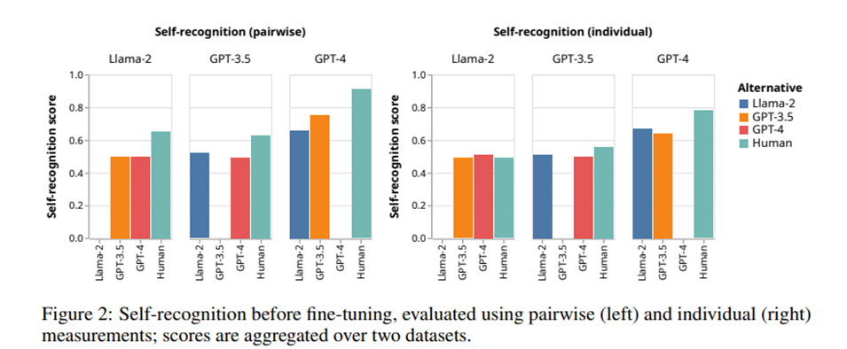 - LLM에게 어떤 문장이 high-quality를 가진 텍스트인지 선택(self-preference)와 어떤 텍스트가 자신이 생성한 텍스트인지 선택(self-recognition)