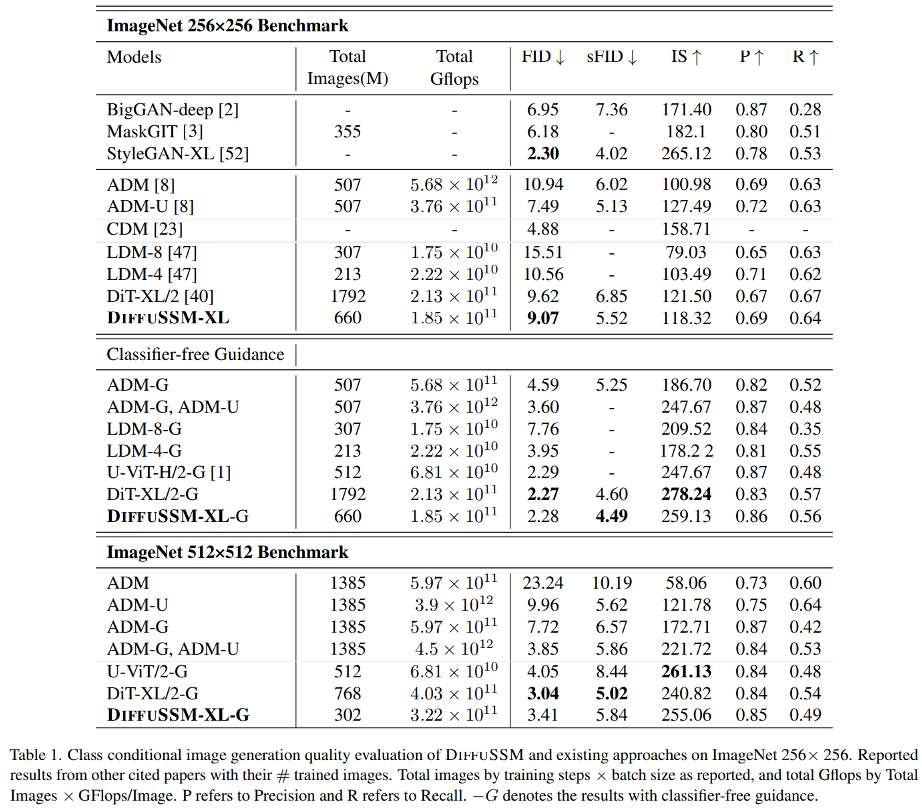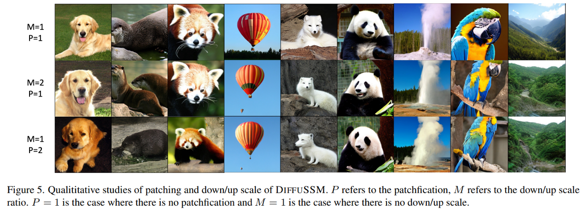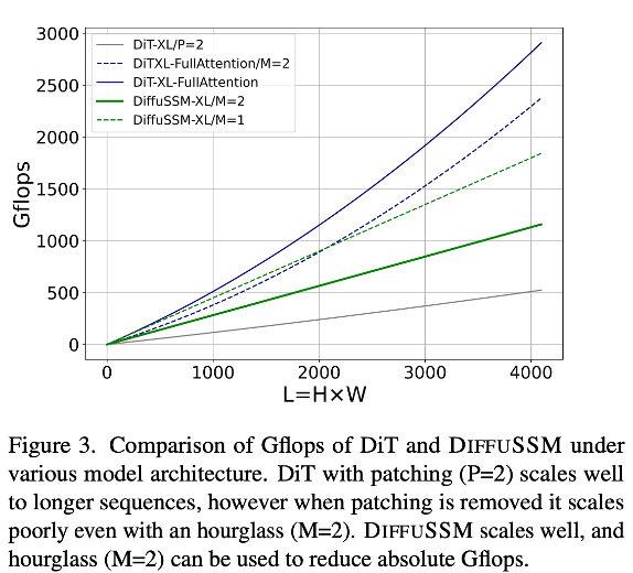 SSM을 도입하면서 본 연구는 patchification을 사용하지 않는 DiT에 비해 full sequence length를 유지하며 Flops에 대한 scalability를 확보할 수 있음을 보였습니다.
