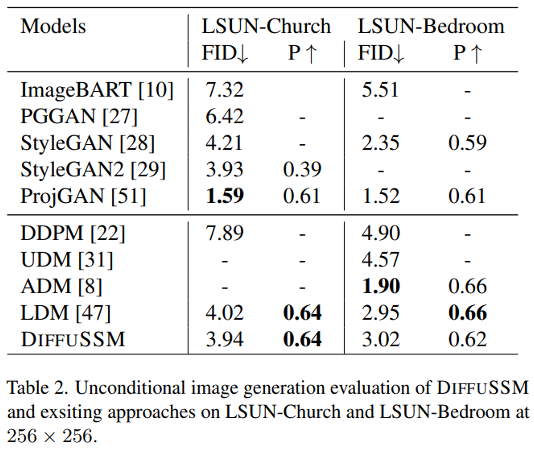 LSUN에서 검증한 unconditional image generation은 LDM과 비슷한 성능입니다.